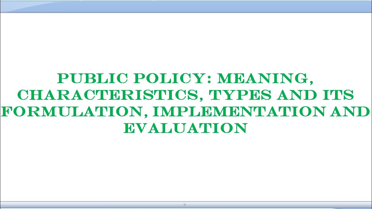 Public Policy: Meaning,Characteristics,Types and its formulation,implementation and evaluation
